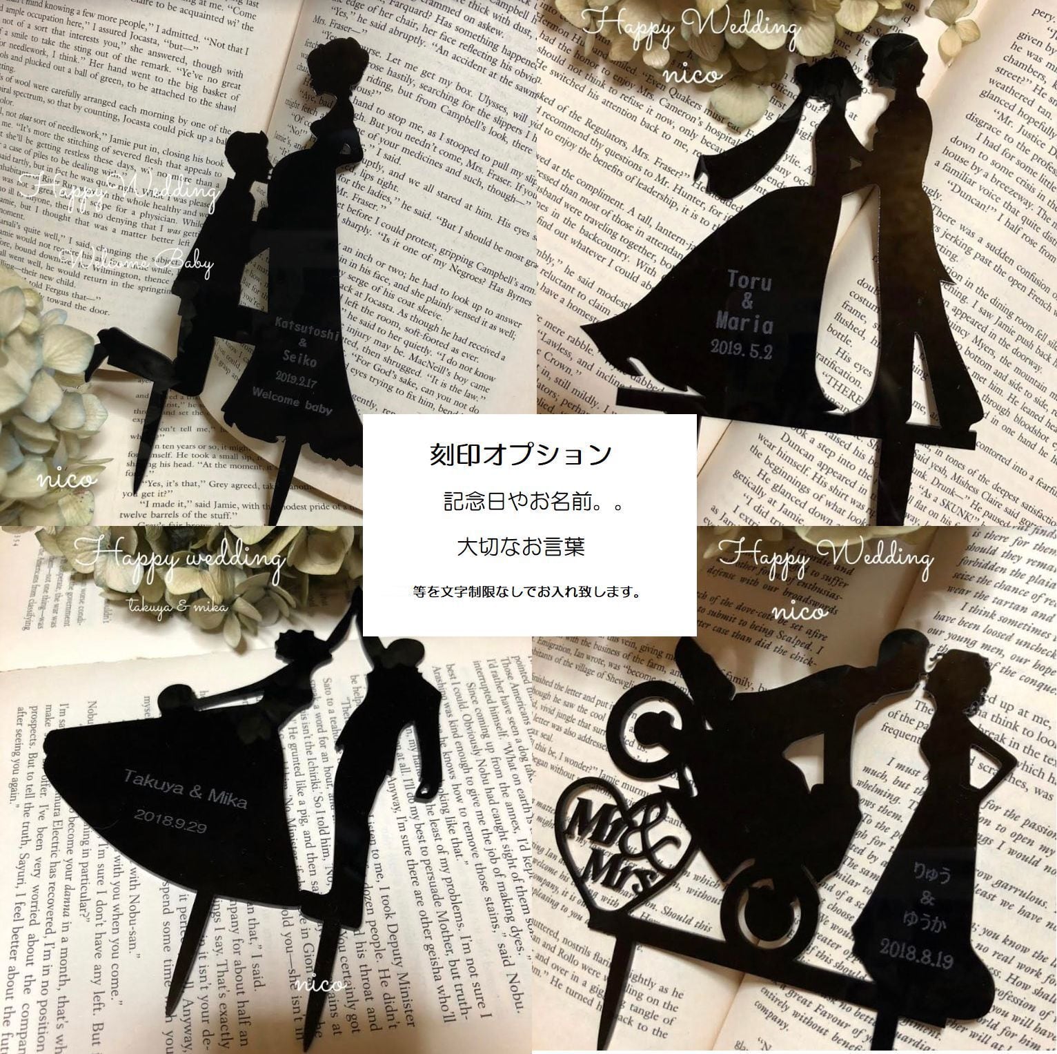 NO.382【即納】【刻印】ウェディングケーキをさらにかわいく華やかに!【ウェディングケーキトッパー】128/4 130/2